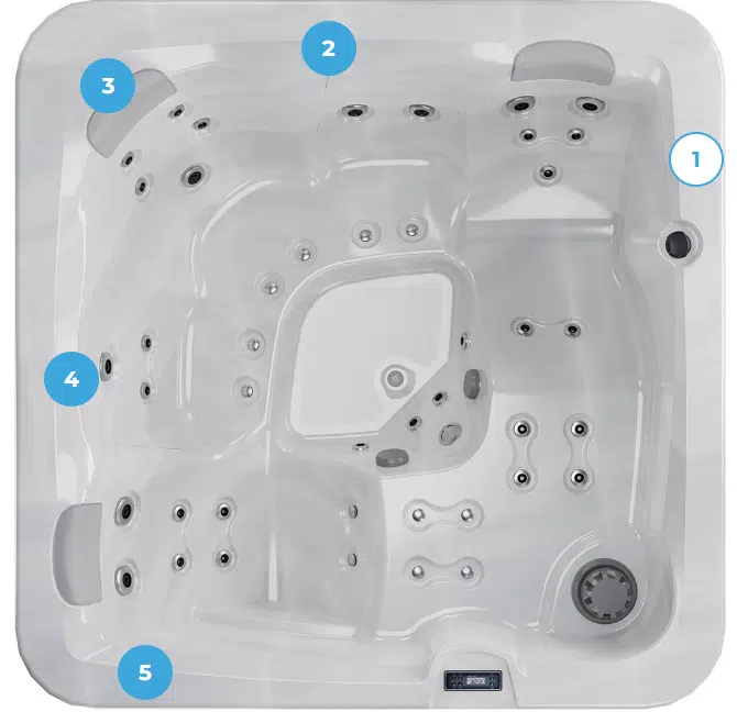 Offrez à votre terrasse ou votre jardin une touche de sérénité avec le spa Balance E. Grâce à ses dimensions compactes et son design raffiné, il s’intègre facilement dans tous les espaces extérieurs et transforme vos instants quotidiens en véritables moments de détente. Avec ses 5 places confortables, dont 2 chaises longues entièrement équipées et 3 assises ergonomiques, chaque utilisateur bénéficie d’un massage adapté à ses besoins. Ses 43 jets performants combinent hydromassages localisés, massages rotatifs drainants, soulagement des tensions et stimulation des pieds. Ajoutez à cela l’aéromassage, et vous obtenez une expérience complète qui apaise le corps et libère l’esprit.