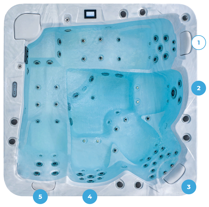 Équipé de 54 jets d’hydromassage et de 16 buses d’air chaud sous pression diffusant des microbulles « effet champagne », il propose des massages à intensité réglable et une température constante, quelle que soit la morphologie de l’utilisateur.